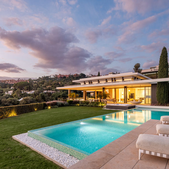 The Hills 1 is a architectural masterpiece crafted by the renowned architect Tobal. Positioned at the end of a gated community within La Quinta, the villa offers exceptional privacy and uninterrupted views. This Newly Built Villa for sale has 6-bedrooms and comes with large indoor spaces with a built size of 738 m2 and sits on a elevated plot over1.700m2, offering unparalleled panoramic views stretching across the Mediterranean coastline. The garden is well manicured, while a private pool and jacuzzi cater to the relaxation of residents.